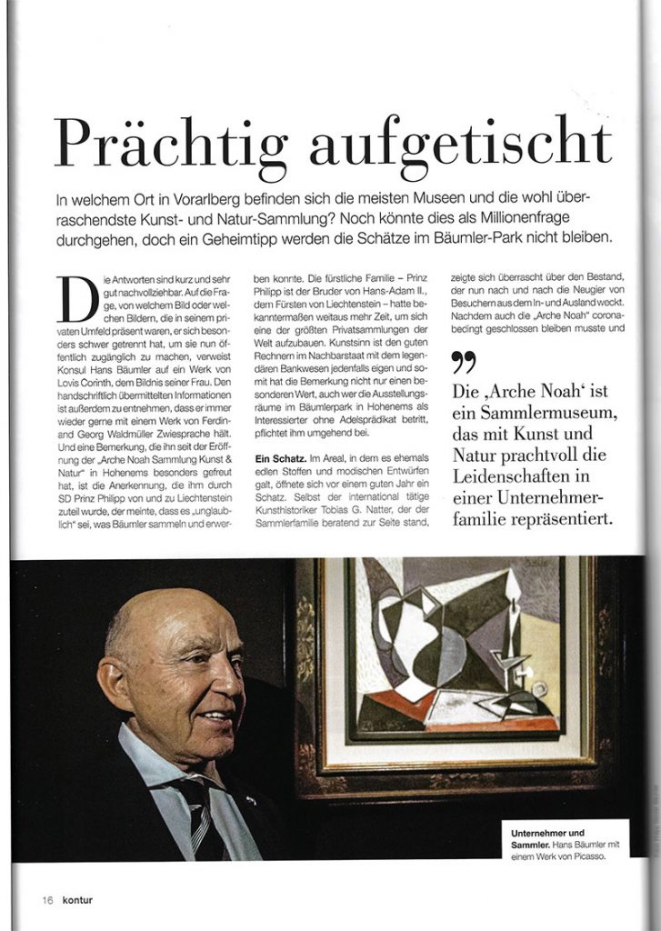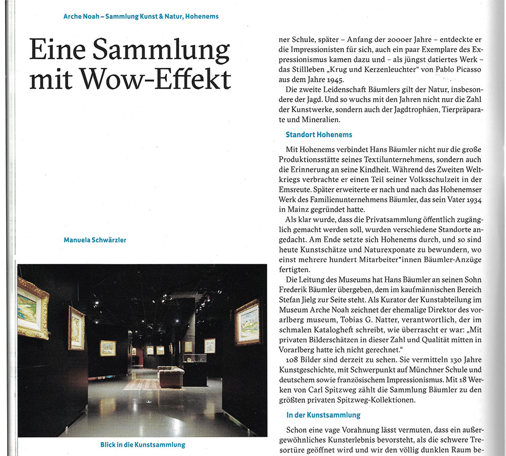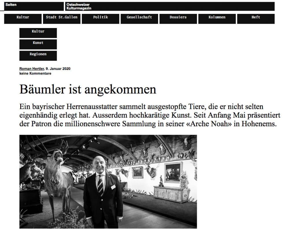 Zur Eröffnungsveranstaltung am Donnerstag, 2. Mai 2019 wurden rund 50 geladene Gäste von Presse, Politik und Kultur begrüßt. Als Festredner traten neben dem Museumsgründer und Geschäftsführer Hans Bäumler auch der Kurator für den Bereich Kunst, Prof. Dr. Tobias G. Natter, als betreuende Sachverständiger für den Bereich Natur, Mag. Joerg Gerstendörfer, sowie der Bürgermeister der StadtArray [Weiterlesen...]